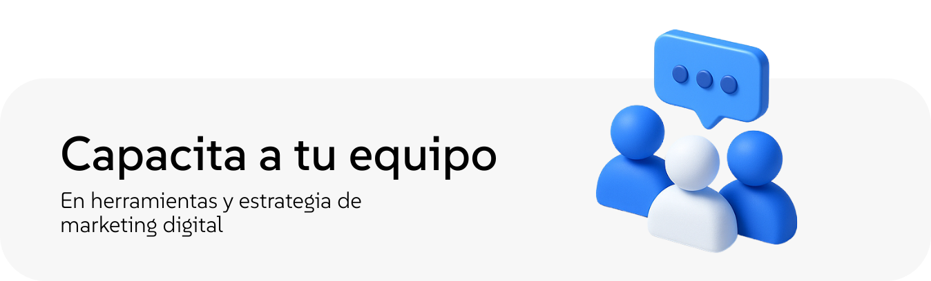 Ofrecemos capacitación integral para tu equipo en áreas como planificación digital, medios pagados, ventas, analítica y estrategia de contenidos. Te ayudamos a optimizar procesos de formación, mejorar la retención del talento y potenciar la adquisición de nuevas habilidades alineadas con los objetivos de tu empresa.